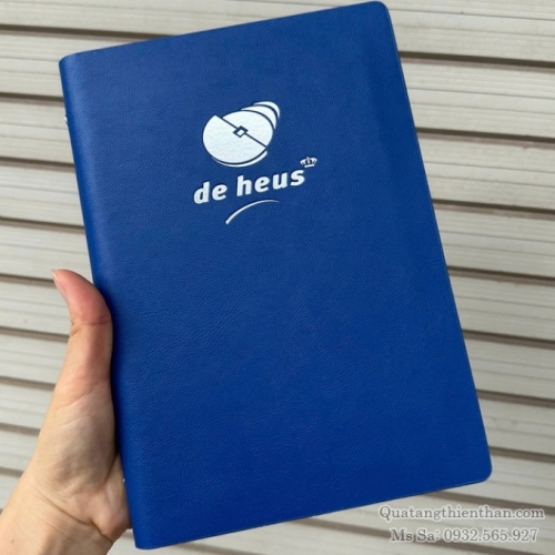 Sổ tay Simili Màu xanh lăn sơn cạnh, Logo được ép nhũ bạc nổi bật