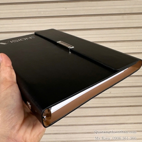 Sổ Tay Bìa Da Màu Đen kích thước A5 có ép lún Logo Cty VISION