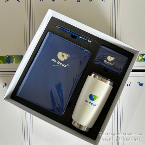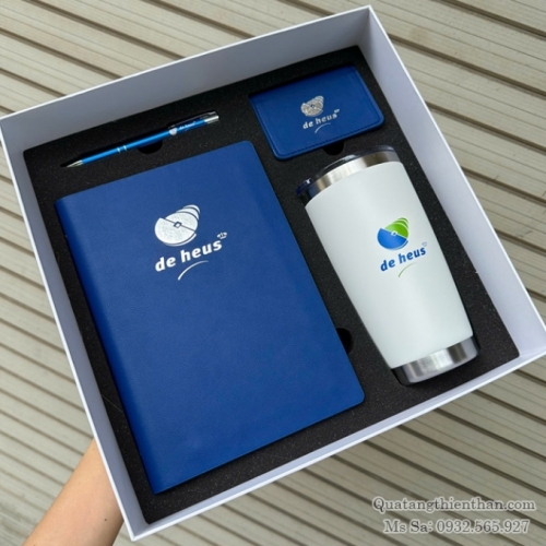 Bộ Quà Tặng Sổ Tay Doanh Nghiệp 4 món gồm Sổ Tay, Bình Giữ Nhiệt, Bút Kim Loại, Ví Đựng Namecard
