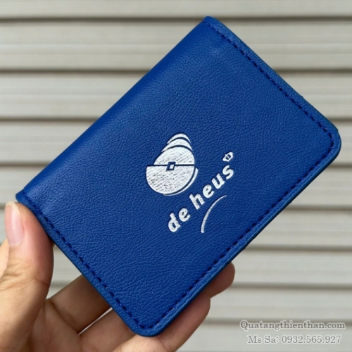 Logo thương hiệu được ép nhũ trên nền Ví Đựng Name card màu xanh tạo sự nổi bật