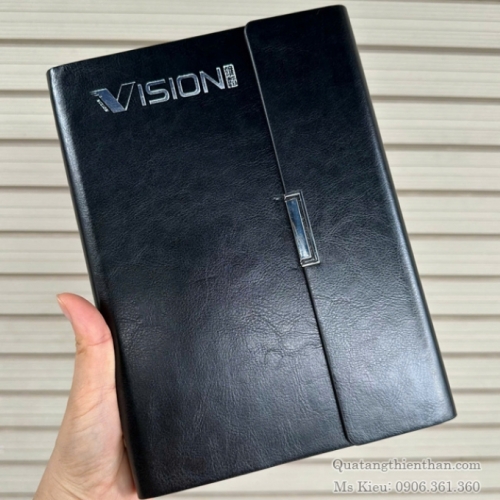 Sổ Tay Bìa Da Màu Đen kích thước A5 có ép lún Logo Cty VISION